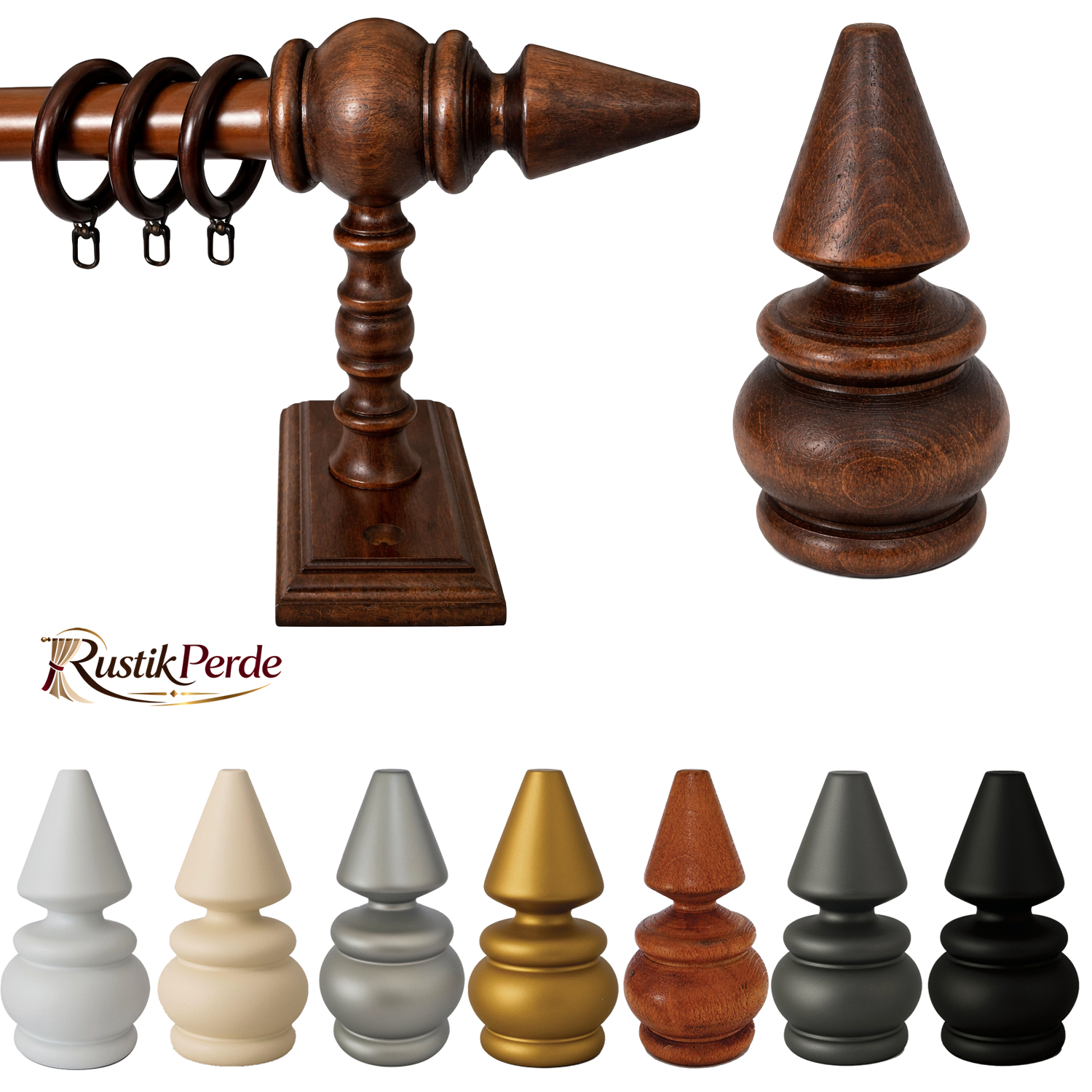 Vezir modelini diğerlerinden ayıran en belirgin özelliği, alt kısımdaki yumuşak geçişli yuvarlak hatların üstteki sivri konik formla kusursuz dengesidir. Bu tasarım; klasik ağır mobilyalarla da, modern “Country” tarzıyla da ya da iddialı “Avangart” mekanlarla da harika bir uyum yakalar. Sadece bir kapak değil, perdenizin duruşunu değiştiren dekoratif bir figürdür.